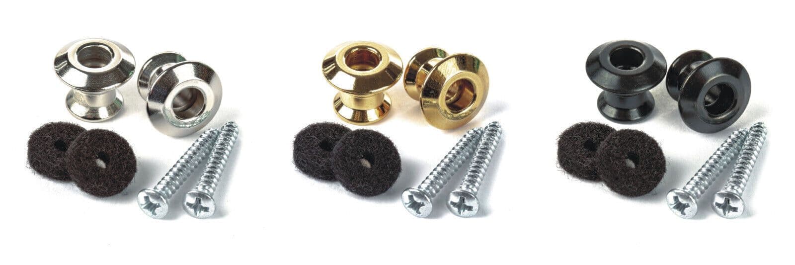 The same strap can be used with several guitars if each guitar is fitted with these buttons.